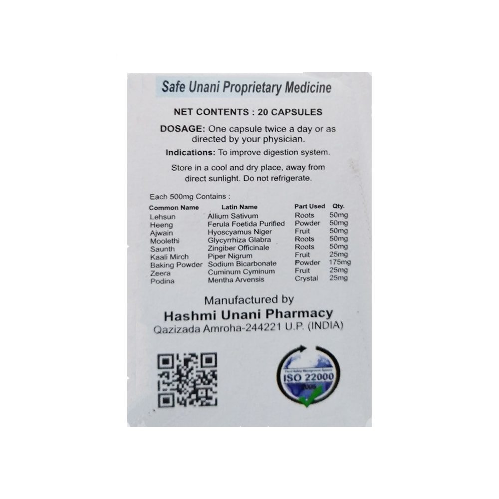 Lehsun-50mg, Heeng-50mg, Ajwain-50mg, Moolethi-50mg,Saunth-50mg, Kalli mirch-25mg, Baking power-175mg, Zeera-25mg, Podina-25mg